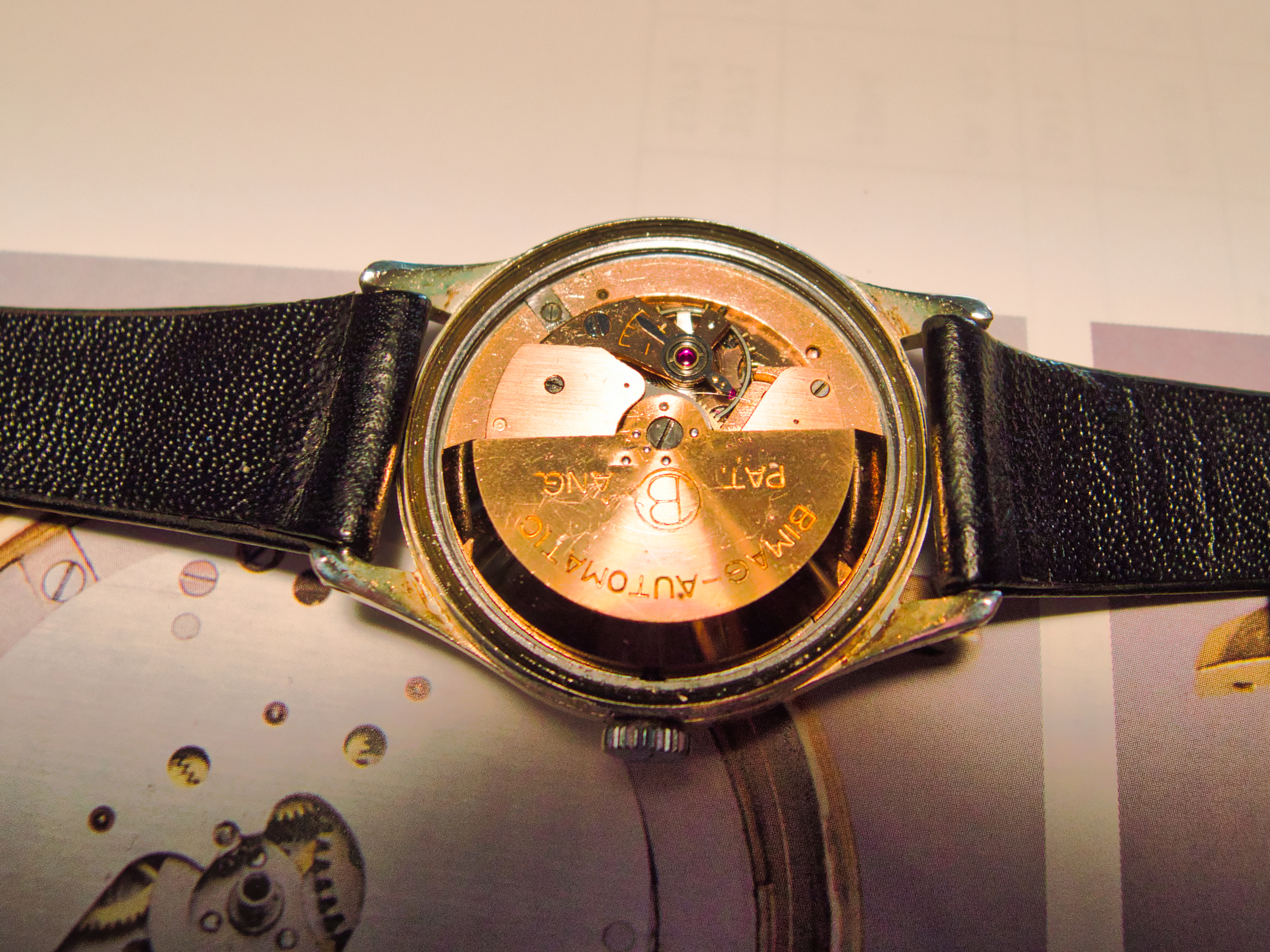 Es ist das Uhrwerk Kaliber 120 aus den Jahren 1955 bis 1968. Dieses Uhrwerk ist die Grundlage für die Bifora „Unima“ und auch den
