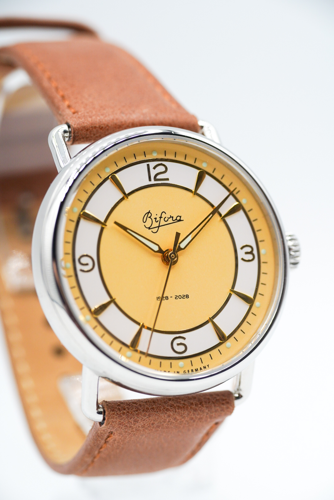 Bifora ist seit 1928 fester Bestandteil der deutschen Uhrengeschichte. Der Schwäbisch Gmünder Hersteller ist gut informierten Uhrenfreunden insbesondere sofort ein Begriff, weil das erste deutsche Armbanduhrenwerk mit Ankergang, das Kaliber 2025, in Schwäbisch Gmünd entwickelt und produziert wurde.